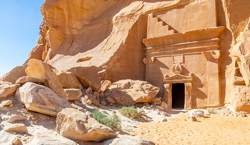Descubre los misterios de Dadan y Jabal Ikmah, sitios históricos famosos por sus inscripciones y tumbas reales. Por la tarde, pasea por el casco antiguo de Al-Ula, comparte un té con una familia local y culmina el día admirando la majestuosa Roca del Elefante.